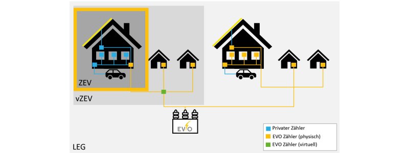 Die interne Abrechnung muss der ZEV entweder selbst übernehmen oder an einen externen Dienstleister vergeben. Die EVO bietet in diesem Zusammenhang keine entsprechenden Dienstleistungen an.